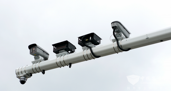 匝道(互通)感知路段可感知进出测试路段的车辆,每个点位主要部署设备有摄像机、路侧天线RSU、毫米波雷达等。