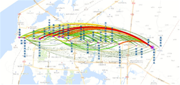 (2)案例应用 通过分析线路的客流出行分布,如果客流具有集散方向集中、长距离出行需求高的现象,相对比较适用大站运营的模式。如下图所示线路,该线路具有明显的几处上客量较大的站点,而这些站点之间又有明显的出行联系,通过结合站点上客量及OD对可以确定该线路具体的大站停靠站点。 在具体的运营中,还需要根据具体客流情况,确定大站线路是高峰期间运营,还是全天运营。
