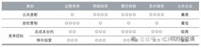 表1 公共汽车运营管理模式与政策目标的对应关系![]()