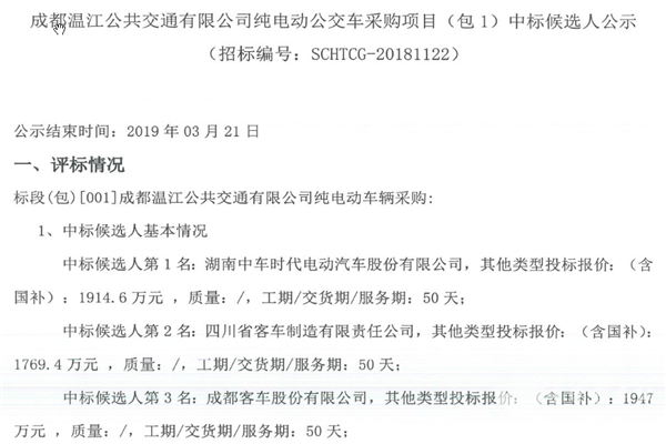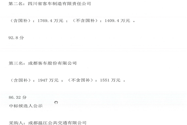 - 攀枝花市城市公交车采购标段三(第二次) 中标候选人公示
