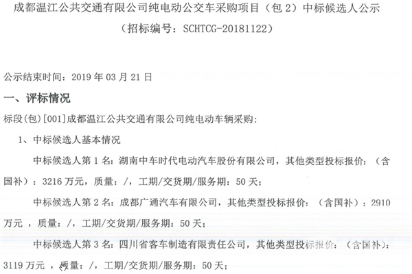 - 深圳巴士集团100台10.5米低地板纯电动公交车辆采购中标候选人公示