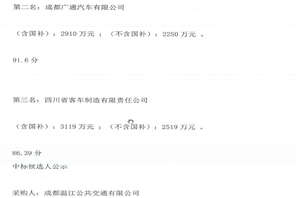 - 攀枝花市城市公交车采购标段三(第二次) 中标候选人公示