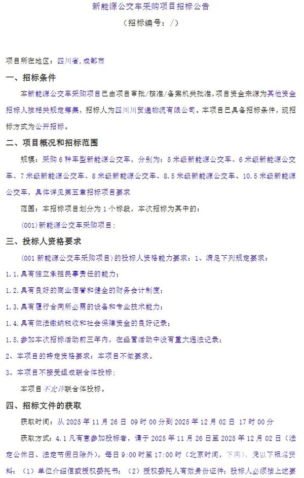 - 沈阳客运集团有限公司2025年度新能源车辆更新采购招标公告