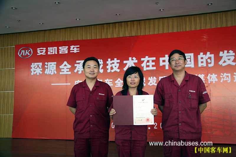 安凯06年申请了国家发明专利,08年月份获得了国家知识产权局的正式授权,这在法律上意味着安凯获得了全承载技术……