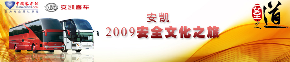 2009年4月25日,安凯在北京龙脉温泉举行了安全之?道全国巡展启动仪式。在向北方客运企业展示09年主推车型的同时,高调向外界宣布将通过全国巡展开始安全文化之旅。 “安凯的品牌主张是‘百年承载 生命至尊’,这句话说出了我们重视安全的企业文化。”会议主持人安凯党委书记汪先锋开门见山的说。据了解,“百年承载 生命至尊”作为安凯的品牌主张已经有很多年,这句话包含了安凯的技术渊源(德国的凯斯鲍尔技术)……