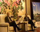 | 恒通客车总经理邓平接受媒体联合采访 | 恒通公司总工程师万昶介绍新品性能及优势 | 恒通公司副总经理田野向嘉宾介绍恒通新能源产品 | 重庆市公共交通(控股)集团有限公司总经理雷军 | 恒通销售公司总经理蒋更新向与会嘉宾致欢迎词 |