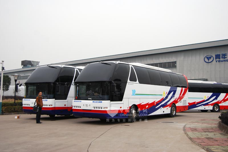 2010年,青年针对国内旅游市场,开发了一款售价在80万元左右的欧洲之星第九代JNP6127EA。该车型除了集NEOPLAN全承载车身、独立悬架等核心技术于一身之外,还根据每一个客户的使用环境和性能反馈,不断改进提升,日趋完善到了第九代,经过中国东北的冰雪道路试验,西北的抗风沙论证,西南的高海拔运行,东南沿海的海洋性气候防腐检验,成熟可靠,适应各种道路环境。欧洲之星第九代,根据旅游车年行驶公里数较短的特点,按照“一变三不变“的原则,保持技术、工艺、散件与以前200多万的顶级客运产品一样,将主要底盘大件(发动机、变速箱、后桥等)选用国内经过使用认证成熟可靠的部件,安全舒适不打折,性价比更符合旅游市场需要…… |