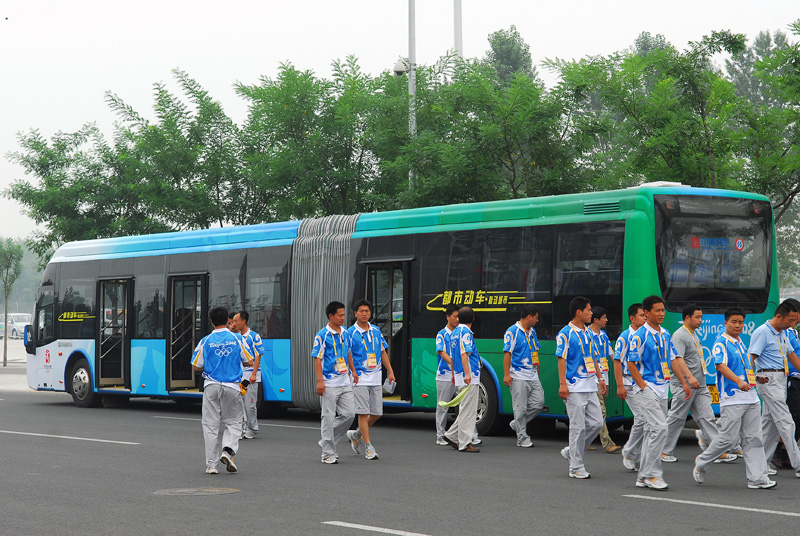 2008年8月8日,第29届奥林匹克运动会将在北京盛大开幕,届时将有上百万人涌进京城,交通问题倍受关注。目前,北京已备齐上万台旅游大巴及城市公交,以应对奥运期间的巨大客流冲击