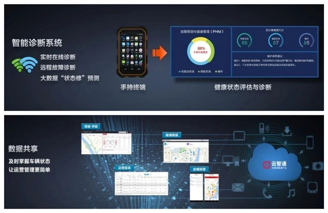 “云控”系统通过精密分析和计算这些数据,可有针对性的“指导”车辆运行。目前,“云控”系统这颗“大脑”能够胜任的工作,包括智能诊断、智能维保、远程车控、数据共享等。