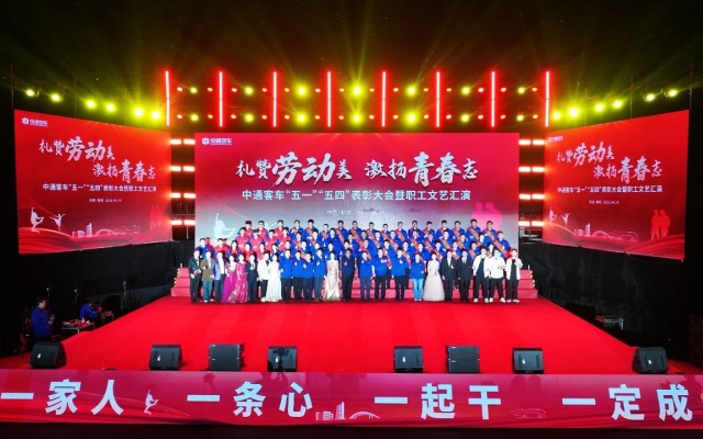 2025年4月29日,中通客车隆重举行“礼赞劳动美,激扬青春志”——“五一”“五四”表彰大会暨职工文艺汇演活动,表彰在企业改革发展中涌现出的先进集体和个人,传承劳模精神,弘扬五四力量!