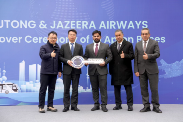 2026年2月10日,宇通与科威特航空公司Jazeera Airways的交车仪式在宇通营销中心举行。16辆宇通高端机场摆渡车正式迎来批量交付。这不仅是宇通首次批量进入科威特机场摆渡车市场,也是在中东交通枢纽机场布局的新突破。