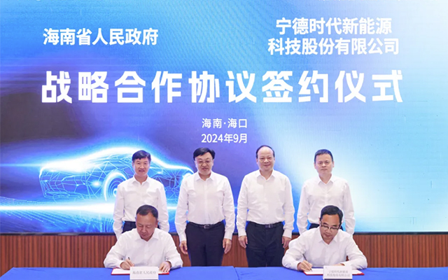 2024年9月28日,海南省政府与宁德时代在海口签署战略合作协议。海南省委书记冯飞、省长刘小明,宁德时代董事长兼CEO曾毓群、监事会主席吴映明见证签约。