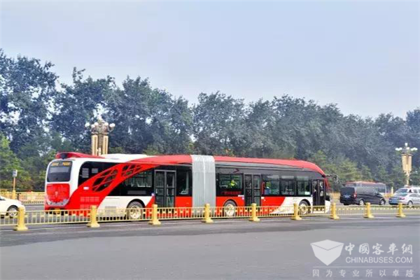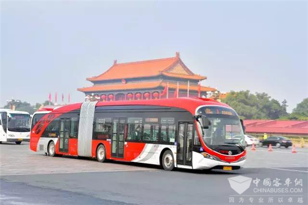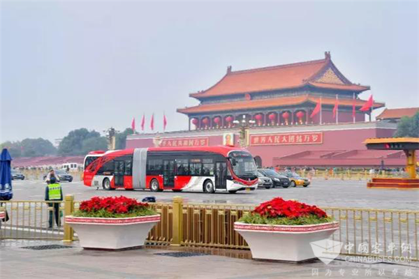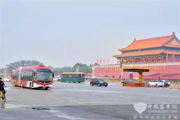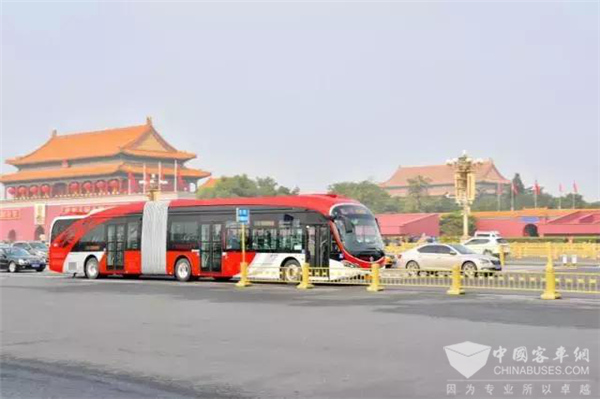 银隆新能源18米纯电动在北京长安街正式运营