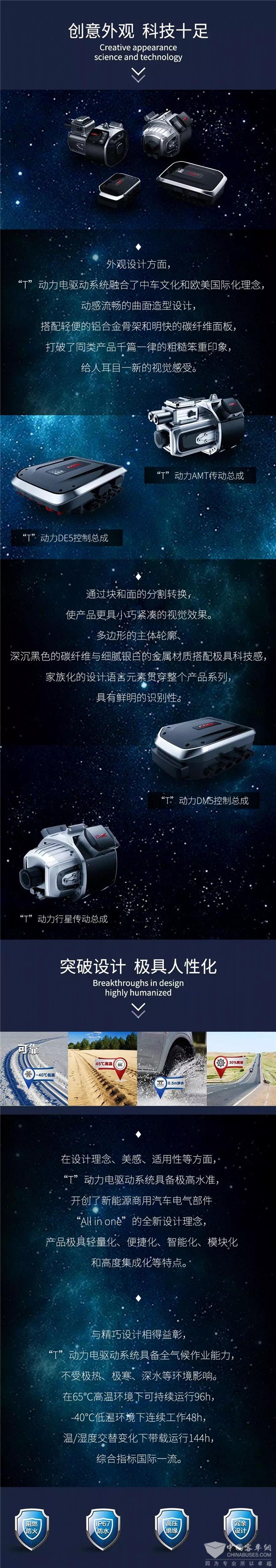 “T”动力电驱动系统是由中车电动依托于轨道交通技术,自主研发的新能源商用车电驱动系统,包含控制总成和传动总成两大核心部件。2017年,中车电动完成了代表中国新能源商用汽车技术发展趋势的“T”动力系列电驱动系统产品开发,并实现批量投产应用,早已“成竹在胸”。