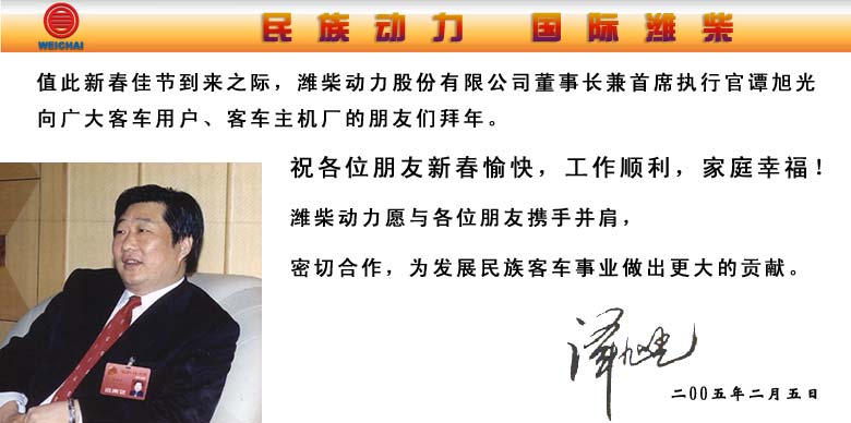 2005, 作为共同发展中国公路客运业的战略合作伙伴,西沃将以“继续关注并满足客户的需求,持续改进、提高客户的满意度”为目标,提供最适合的产品和最细致的服务,力争成为您最佳的商业合作伙伴。