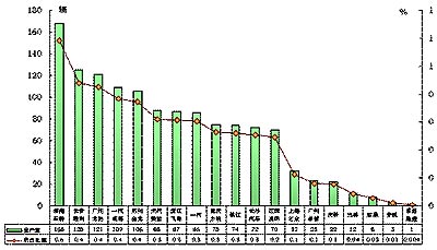 2004年1月轻客(含"准轿车")主要企业产量及所占比重排序(1) 2004年1月轻客(含"准轿车")主要企业产量及所占比重排序(2) 2004年1月轻客(含"准轿车")主要企业销量及市场份额排序(1) 2004年1月轻客(含"准轿车")主要企业销量及市场份额排序(2) 2004年1月轻客(不含"准轿车")主要企业销量及市场份额排序 2004年1月轻客(含"准轿车")销售同比增长率 1月份全国轻客(含"准轿车")销售环比下降 42.19%,同比下降21.84%。从市场份额看,金杯居第一,同比下降1.1个百分点,长城增长1.8个百分点,江淮增长3.6个百分点,豪情增长2.5个百分点,东南下降8.0个百分点,东风下降1.4个百分点,江铃增长2.3个百分点,北汽下降1.4个百分点,长丰下降0.4个百分点,吉利下降1.5个百分点,中兴增长1.5个百分点,跃进下降0.1个百分点,郑州日产增长1.2个百分点,江西富奇增长1.3个百分点,荣城华泰增长1.0个百分点,芜湖扬子下降0.8个百分点,长安胜利下降0.05个百分点,一汽下降0.4个百分点。