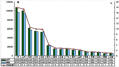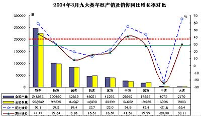 2004年1-3月累计主要汽车企业产销量及市场份额排序