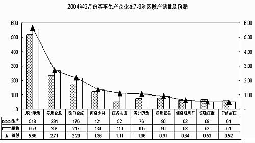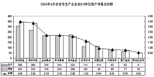 2004年6月部分客车分长度8-9米区段产销对比分析