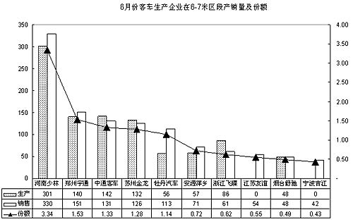 2004年6月部分客车分长度6-7米区段产销对比分析